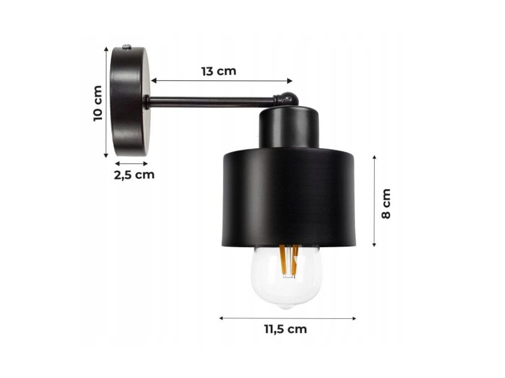 Nástěnná lampa - hrnek - E27 - černá