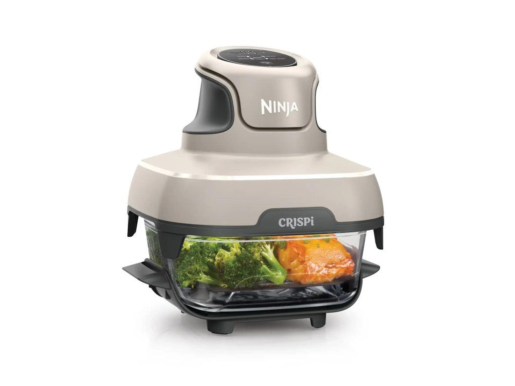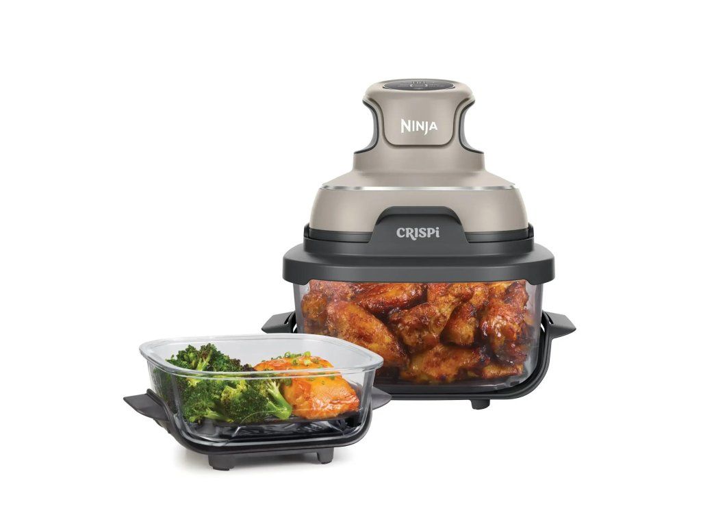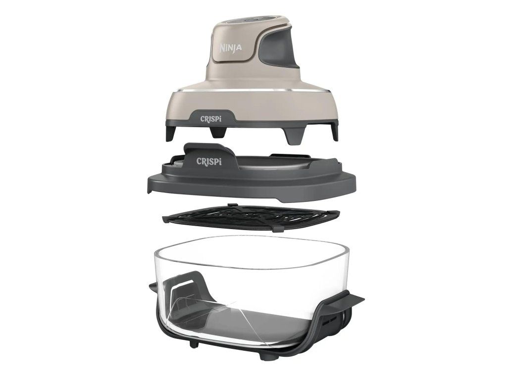 Ninja FN101EUST Crispi, přenosná horkovzdušná fritéza, 4v1, šedá, příkon 1700 W, skleněné nádoby 1,4 l a 3,8 l, bez PFAS