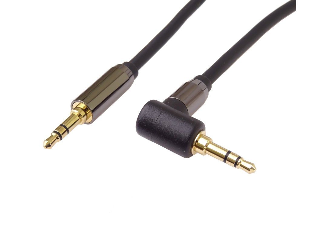 PremiumCord HQ stíněný kabel stereo Jack 3.5mm - Jack 3.5mm zahnutý 90° 1,5m