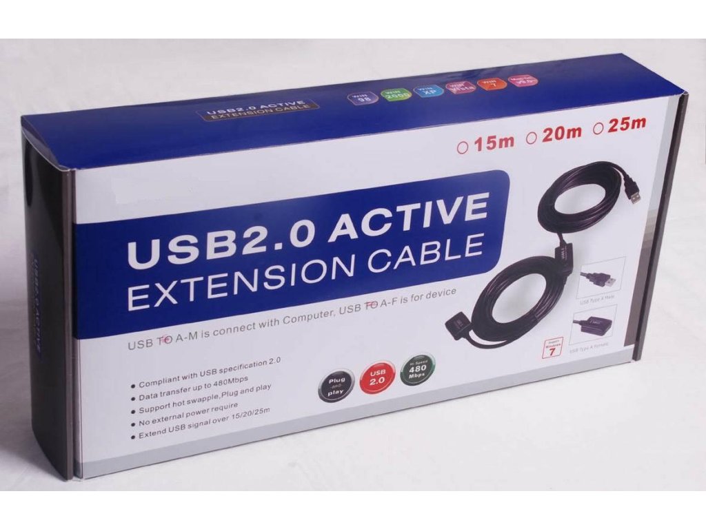 PremiumCord USB 2.0 repeater a prodlužovací kabel A/M-A/F 15m