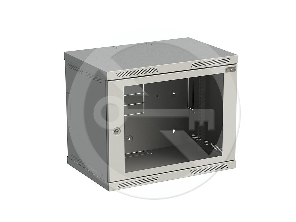 Rozvaděč nástěnný SENSA 9U 400mm, dveře sklo, RAL 7035, SENSA-9U-64-11-G