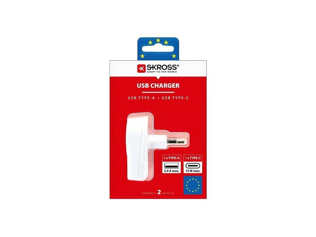 SKROSS USB A+C nabíjecí adaptér EU, 27W, typ C