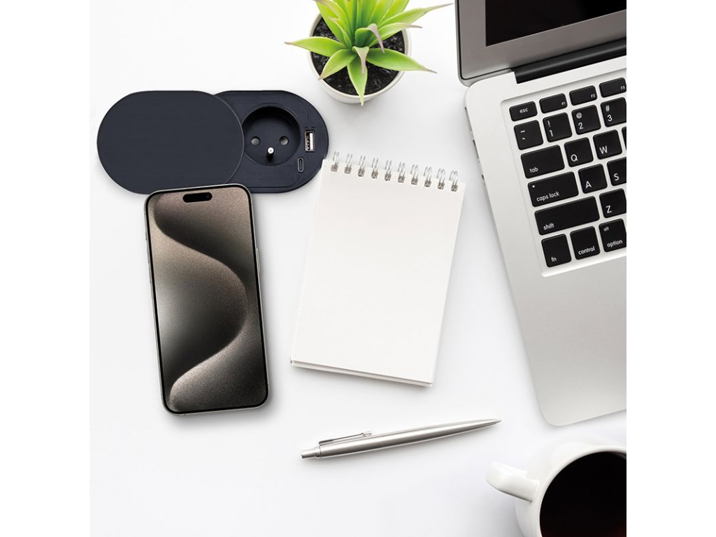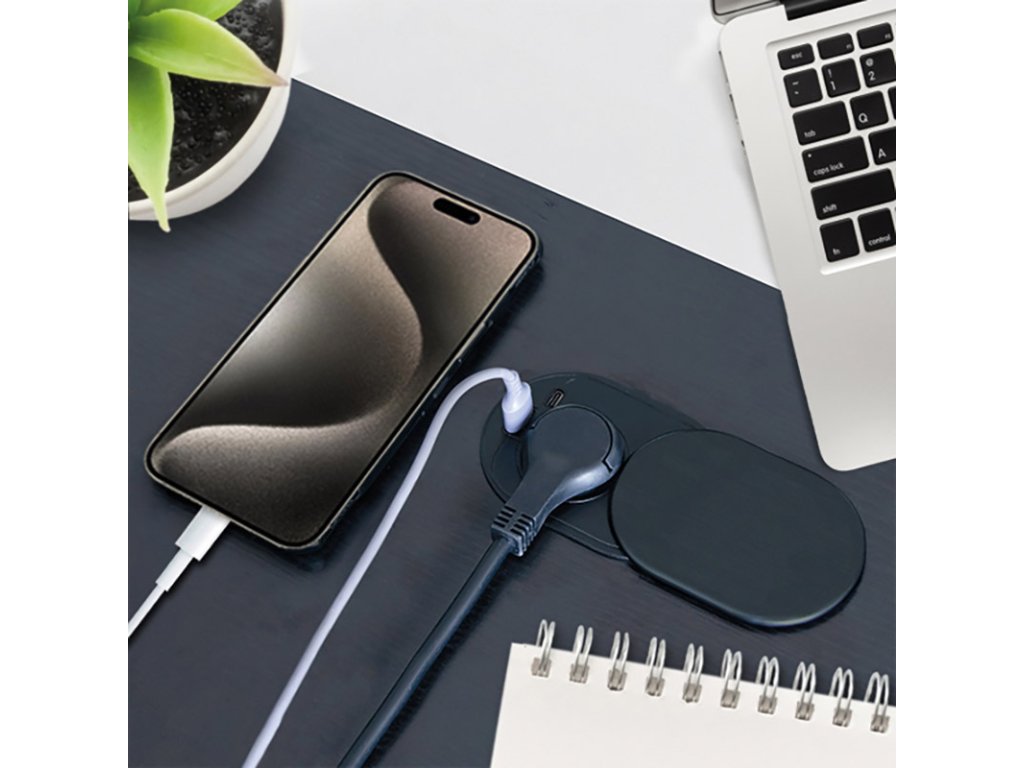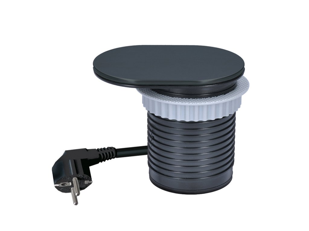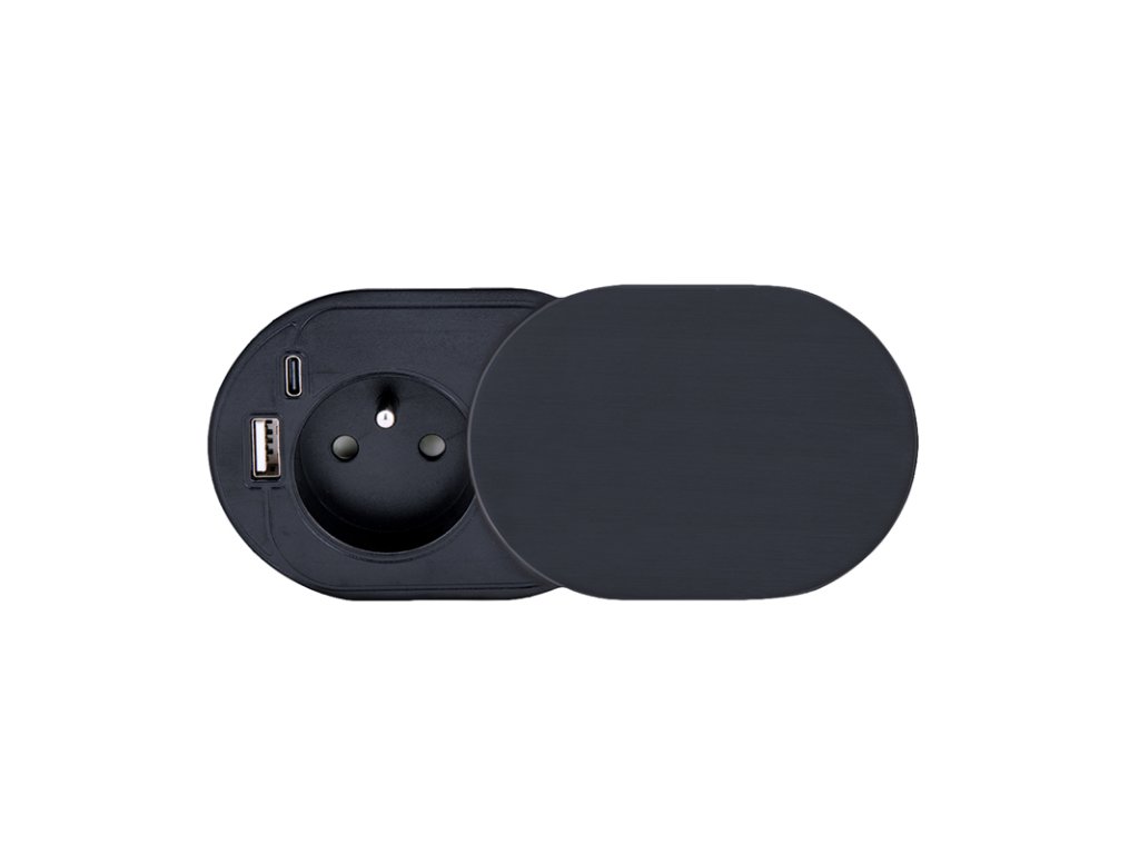Solight 1z + USB A+C 20W PD vestavná zásuvka s posuvným víčkem, 2m, matná černá