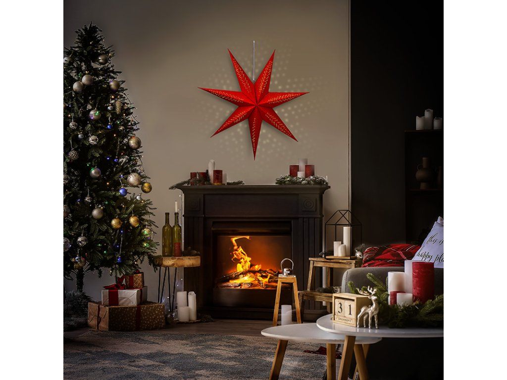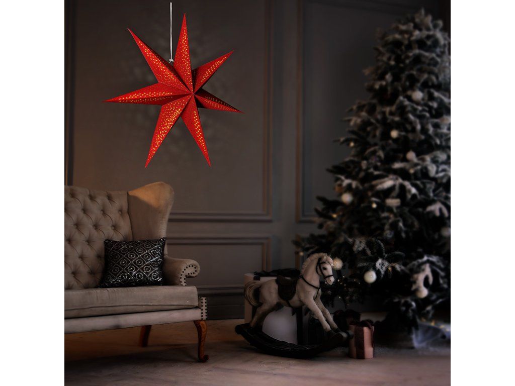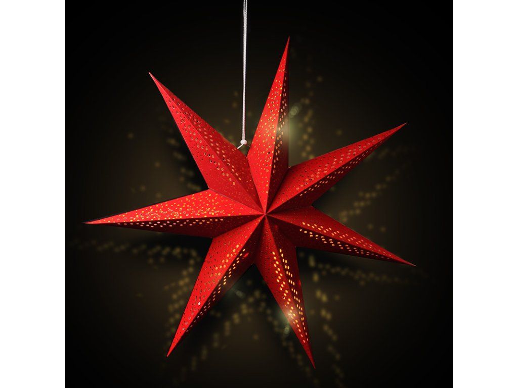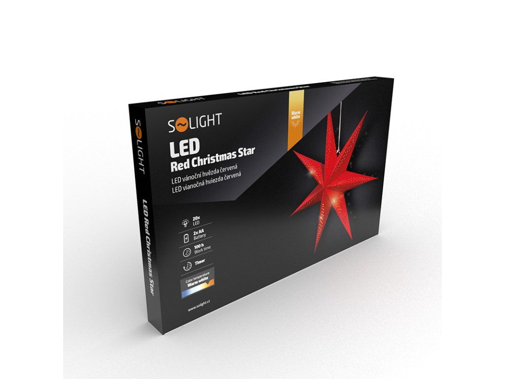 Solight LED vánoční hvězda červená, závěsná, 60cm, 20x LED, 2x AA