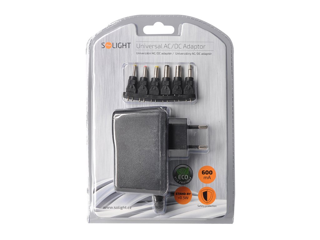 Solight univerzální síťový adaptér 600mA, stabilizovaný, výměnné konektory
