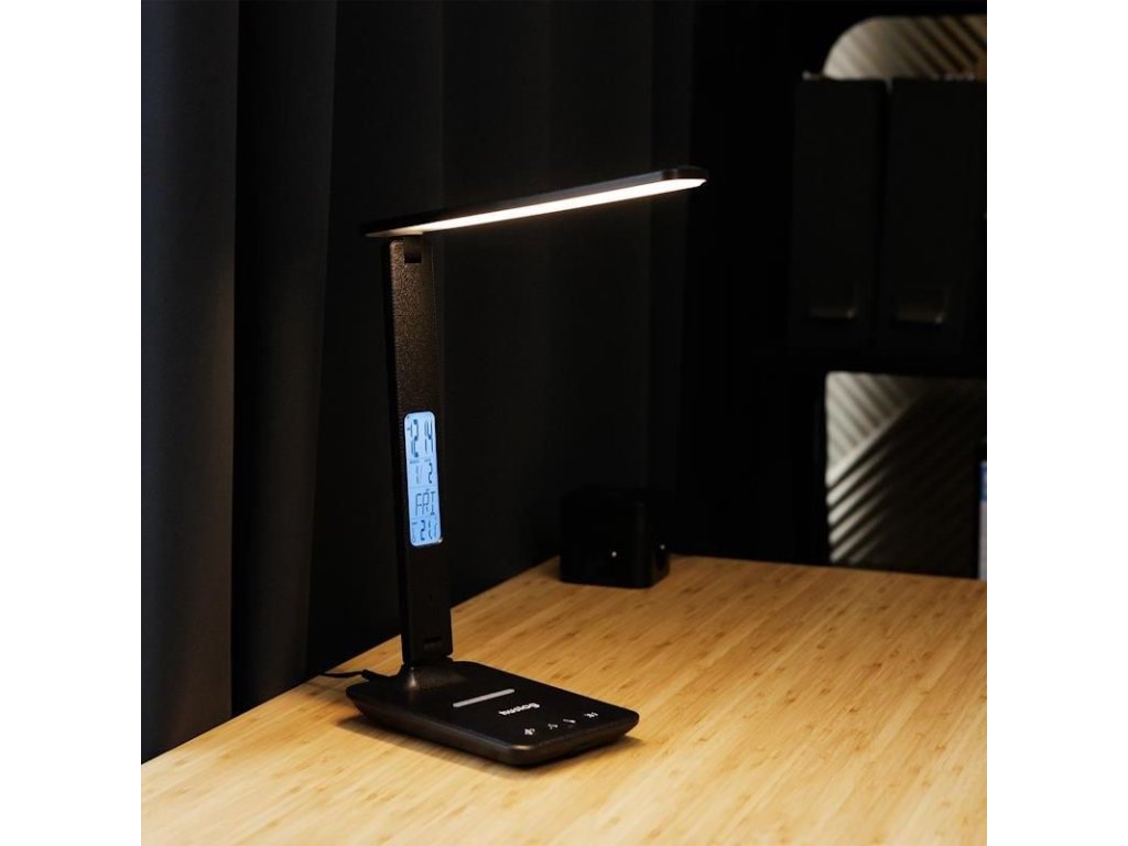 Stolní LED lampička Huslog černá s displejem a bezdrátovou nabíječkou