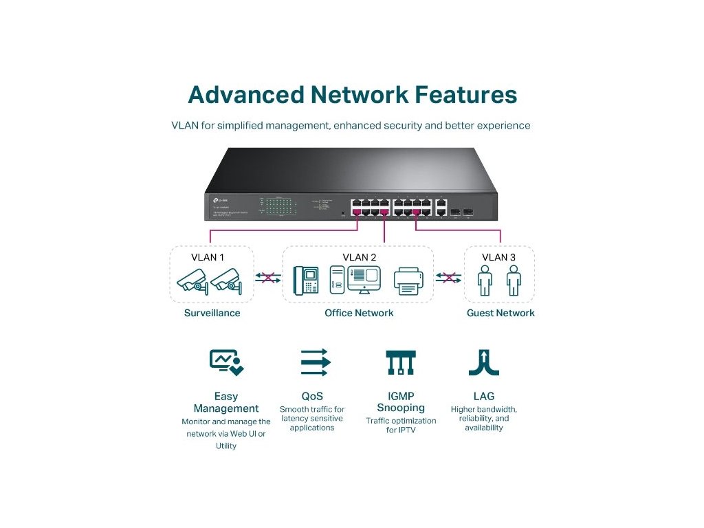 Switch TP-Link TL-SG1218MPE Smart, 18x GLan s PoE+, 2x SFP Combo, 250W
