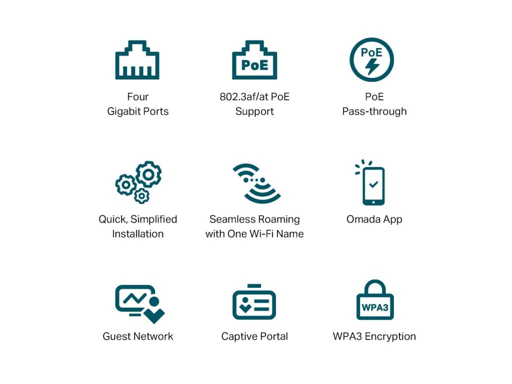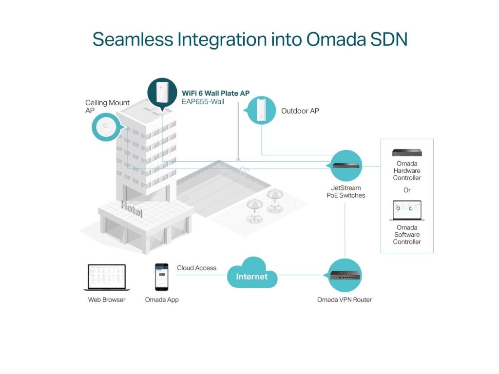 TP-Link EAP655-wall - AX300 WIFI 6 přístupový bod Omada 1X GLAN POE IN, 1 GLAN POE OUT, 2X GLAN OUT povrchová montáž na