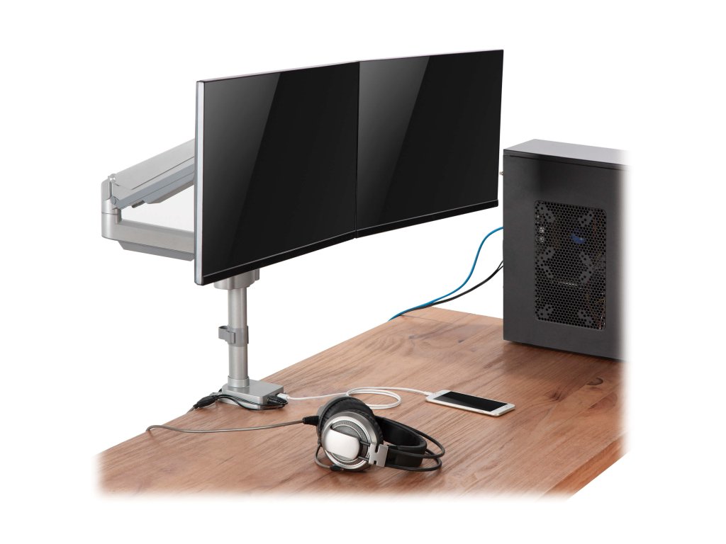 Tripplite Držák pro montáž monitoru na stůl, pro 2x 13''…34'', Flex Arm, USB, Audio konektory