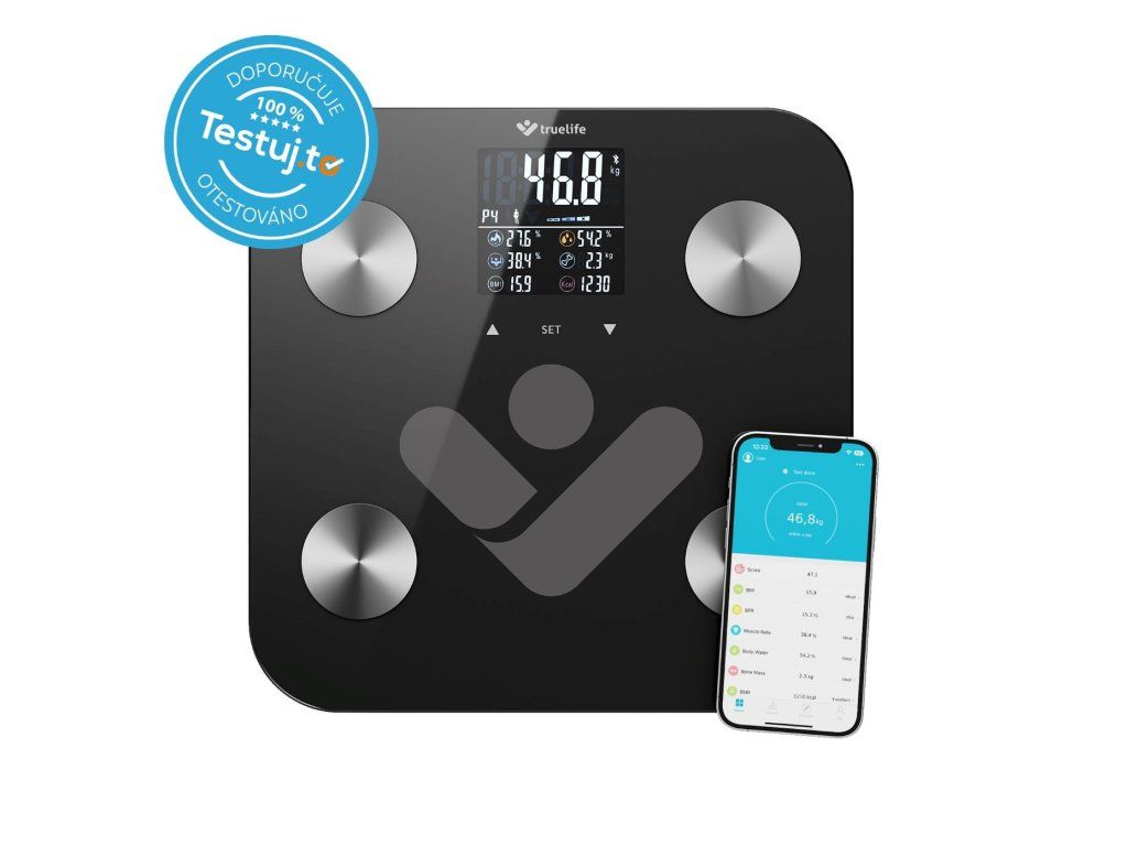 TrueLife FitScale W6 BT - Bioelektrická impedanční bluetooth váha - černá