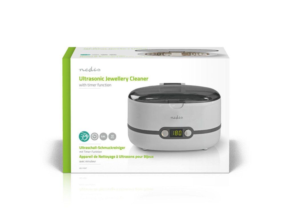 Ultrazvuková čistička Nedis JECL110WT profi, k čištění šperků, brýlí, 600 ml