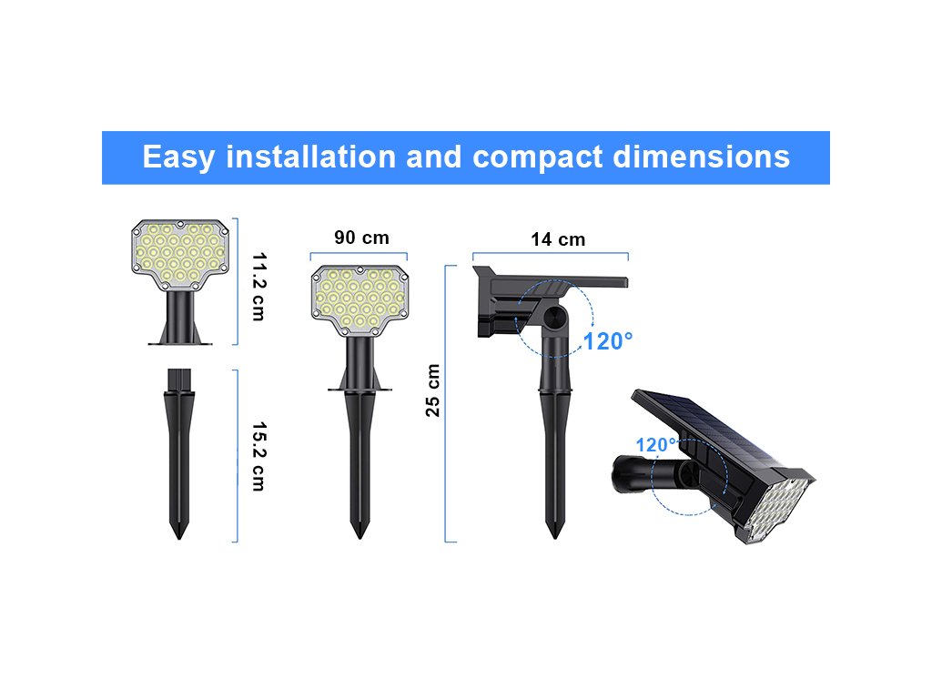 Venkovní solární LED světlo VIKING D26/650lm/2200mAh/3 režimy/IP65/instalace-zem i zeď