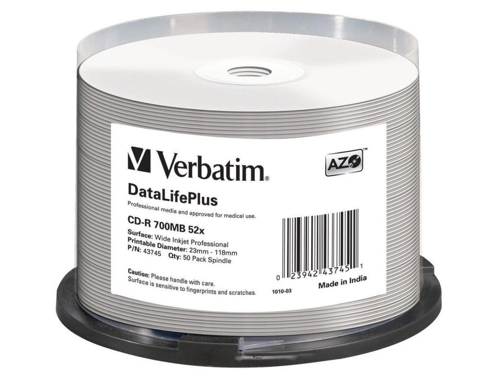 Médium Verbatim CD-R DLP 80min. 52x WIDE Profesional Printable 50-cake
