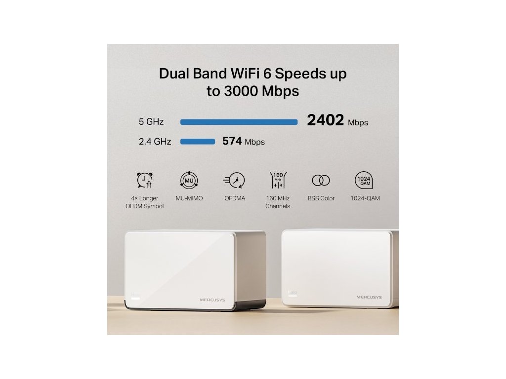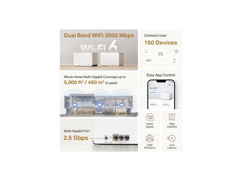 WiFi router TP-Link Mercusys Halo H85X(2-pack) WiFi 6, AX3000, 1x 2,5GLAN, 2x GLAN2,4/5 GHz