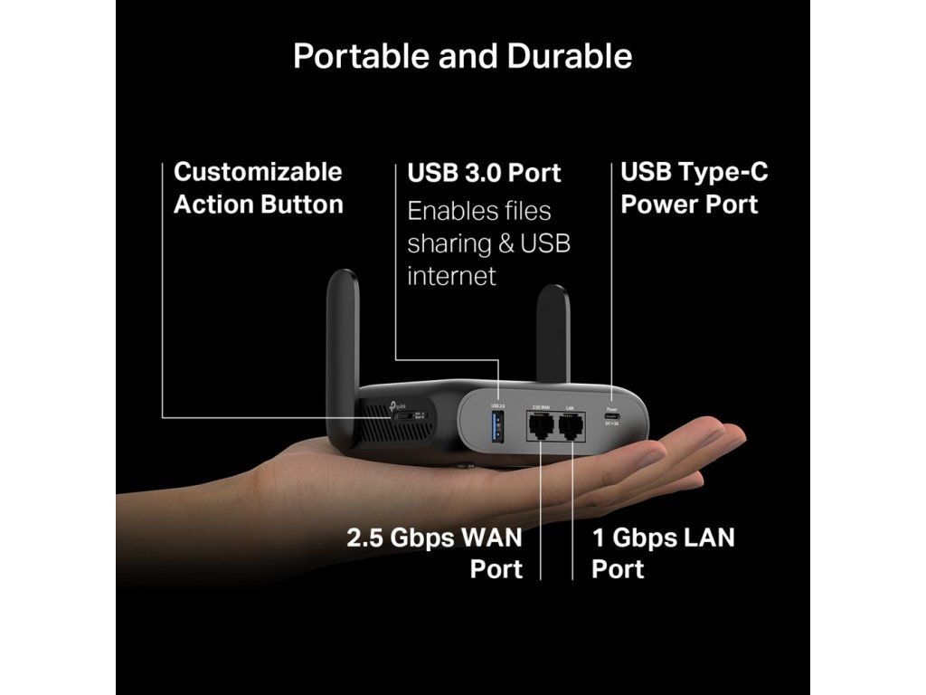 WiFi router TP-Link TL-WR3602BE cestovní, BE3600, WiFi 7, 1x 2,5GWAN, 1x GLan, USB, 2,4/5GHz