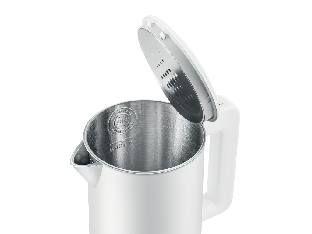 Vnitřek konvice je vyroben z prvotřídní nerezové oceli 304, která se vyznačuje výjimečnou odolností vůči korozi, pachům a snadným čištěním. Skrytá topná spirála pod topným dnem minimalizuje usazování vodního kamene a usnadňuje údržbu. Konvice je vybavena spolehlivým STRIX konektorem, který zaručuje bezpečné ovládání a dlouhou životnost.