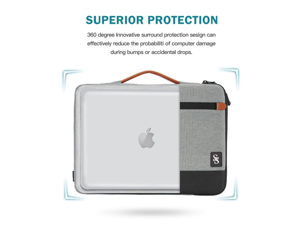Taška je vyrobena ze tří vrstev textilie - vnější voděodolný materiál, který odolá cákancům vody, střední nárazu vzdorný materiál a vnitřní měkký materiál. Díky těmto třem textiliím máte jistotu, že je vaše zařízení v bezpečí za všech okolností. Rohy brašny jsou navíc opatřeny ochranou rohů zařízení.