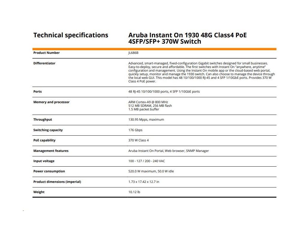 10 x Aruba Instant On 1930 48G Class4 PoE 4SFP/SFP+ 370W Switch ( 10 pack )