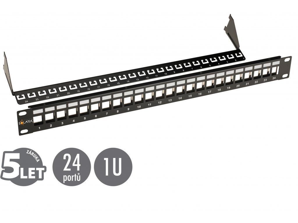 Patch panel Solarix modulární neosazený 24 portů, černý 1U