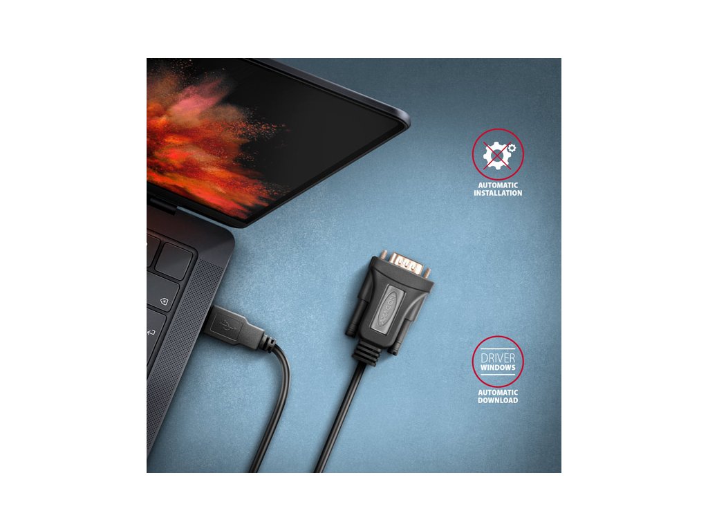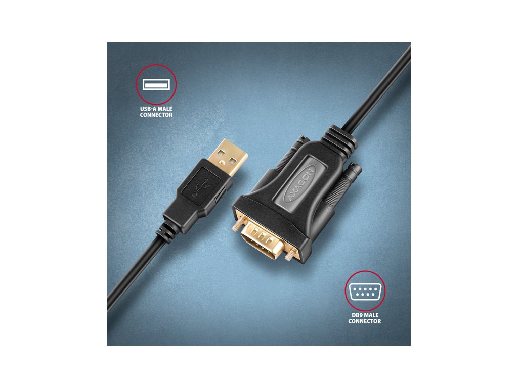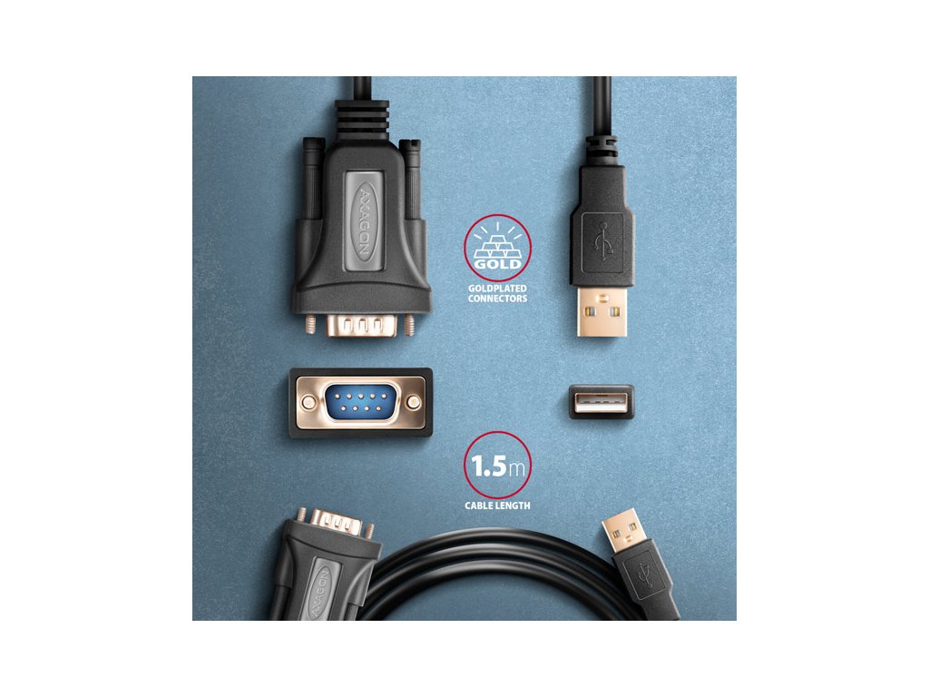 AXAGON ADS-1PQN, USB-A 2.0 - sériový RS-232 DB9-M FTDI adaptér / kabel 1.5m