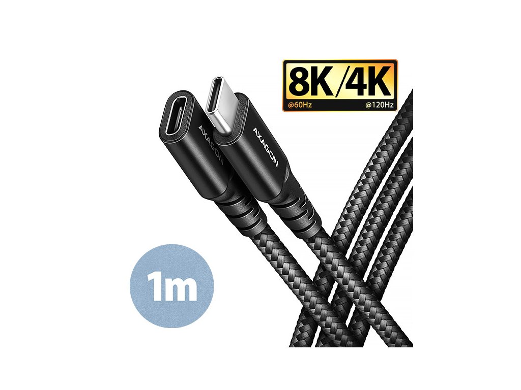 AXAGON BUCM32-CF10AB prodlužovací kabel USB-C (M) <-> USB-C (F), 1m, USB 20Gbps, PD 240W 5A, 8K HD, ALU, oplet, černý