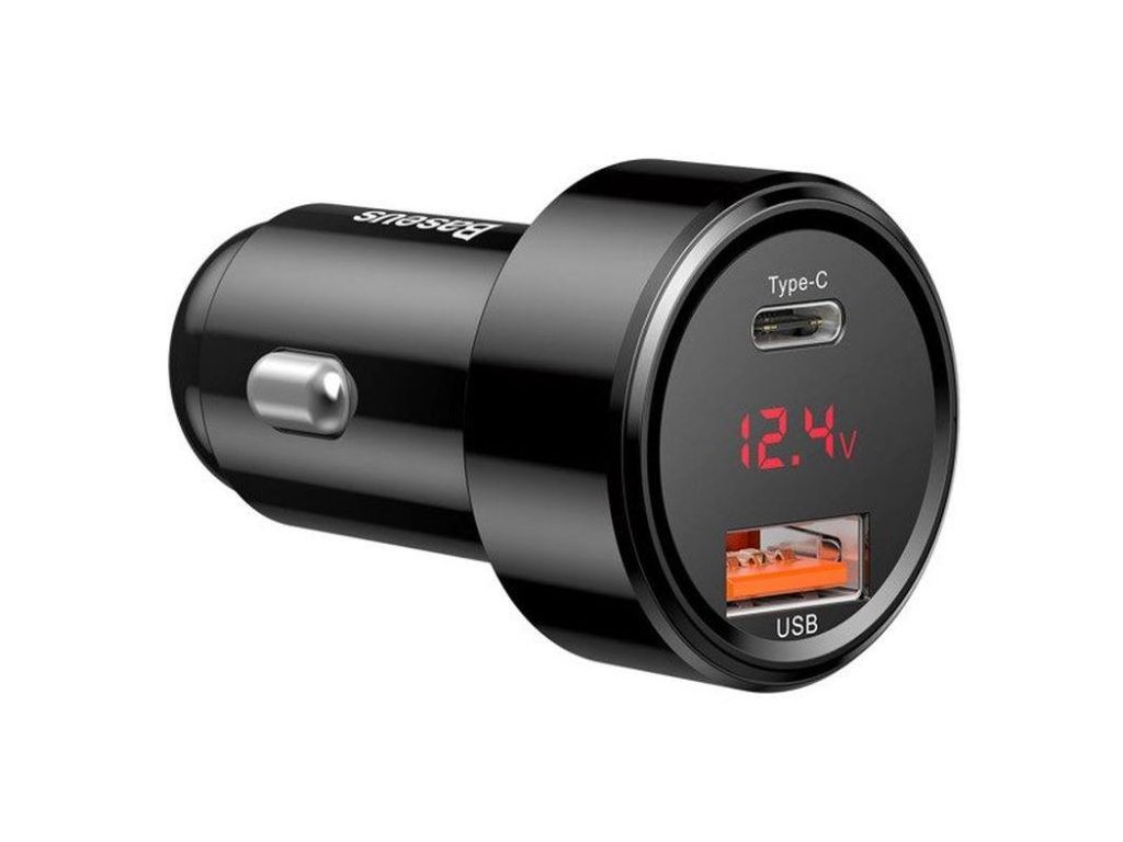 Baseus nabíječka do auta Magic USB-C PD, USB-A 45W s displejem černá
