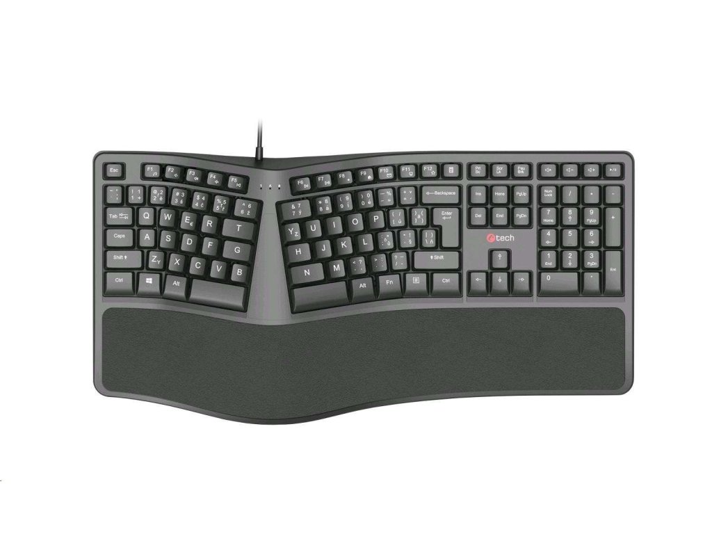 C-TECH Klávesnice KB-113E USB, ERGO, černá, CZ/SK