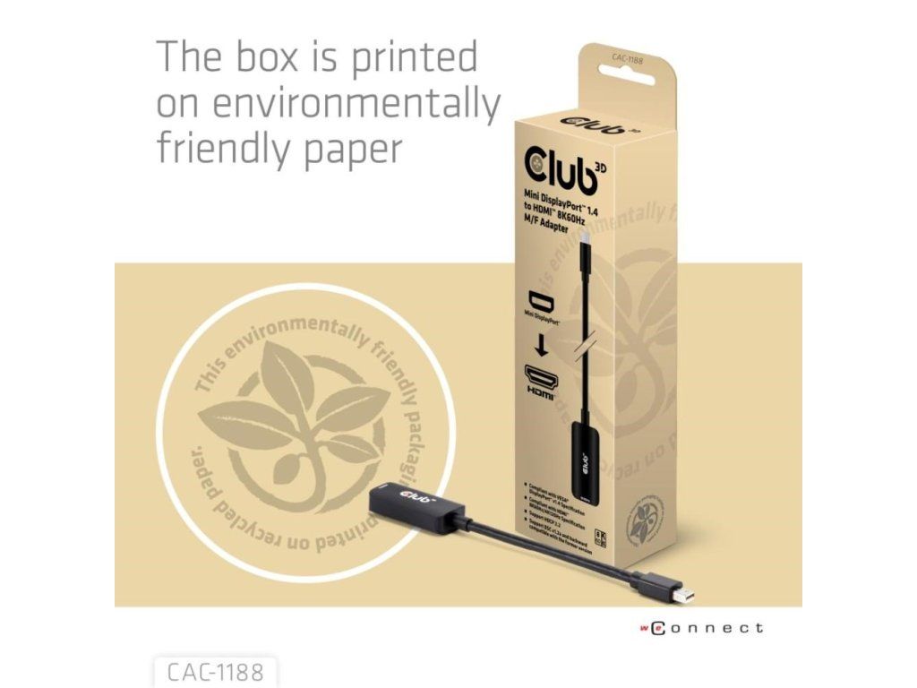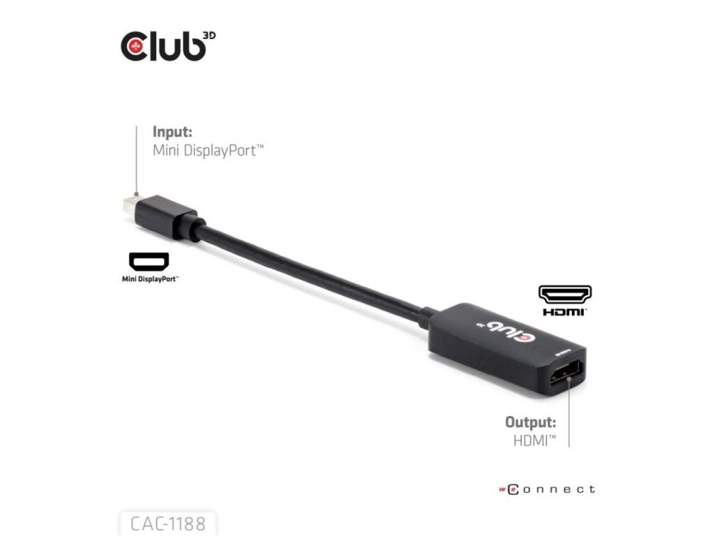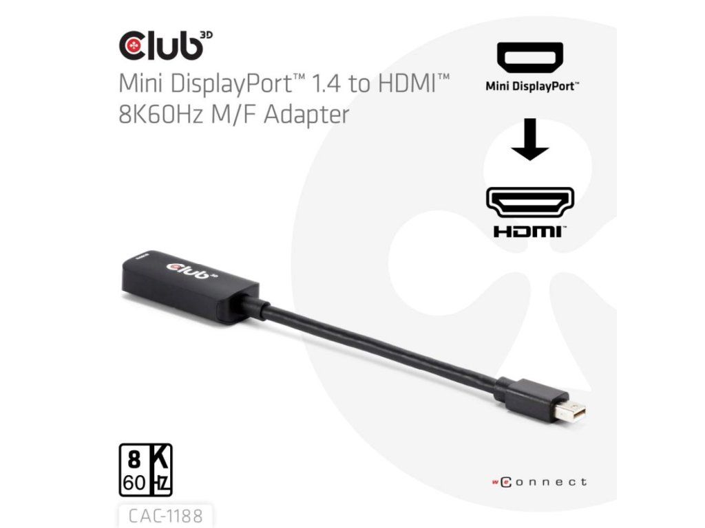 Club3D Adaptér miniDP 1.4 na HDMI, 4K120Hz nebo 8K60Hz HDR10+, M/F, 9cm