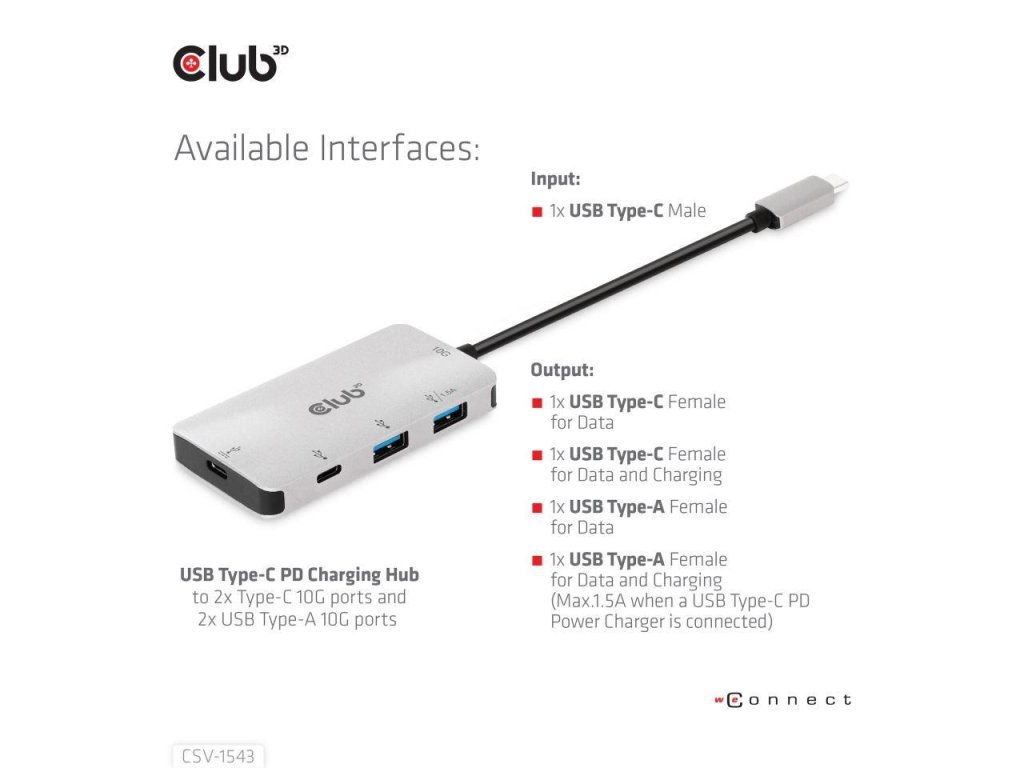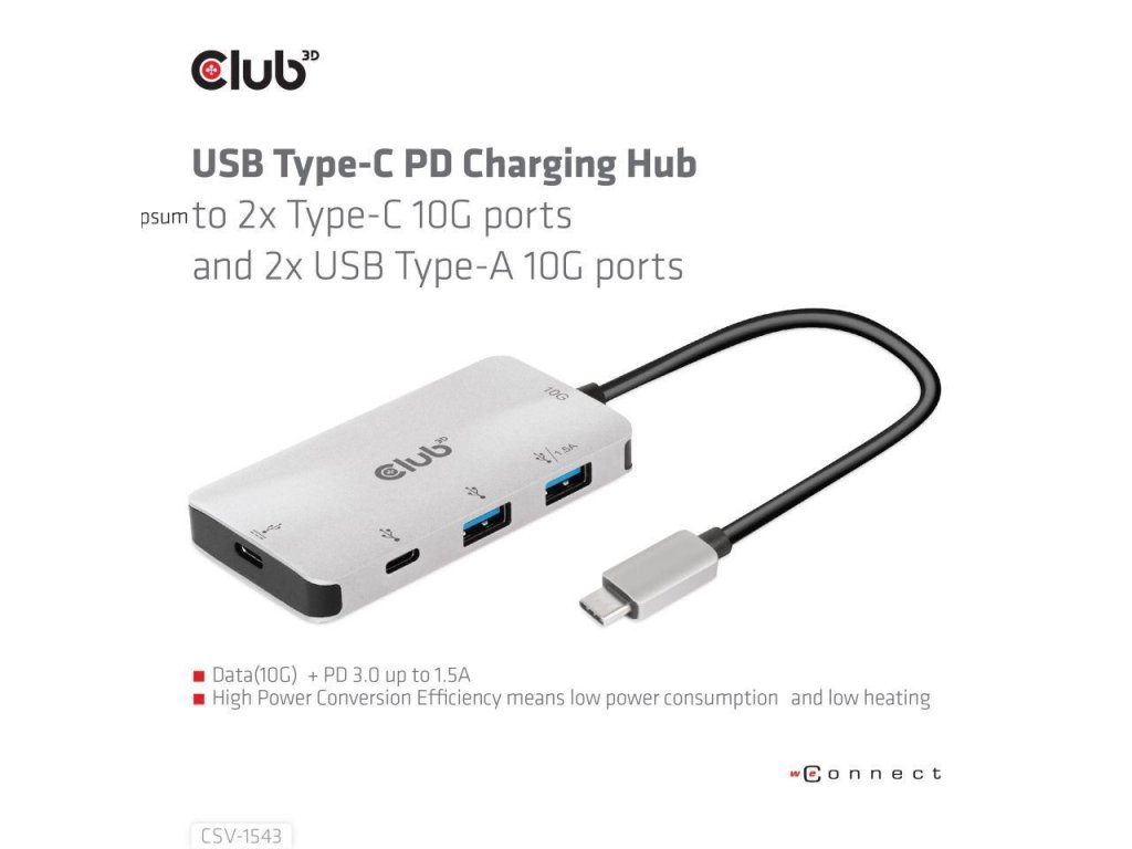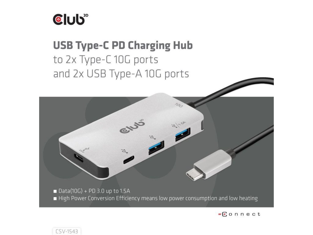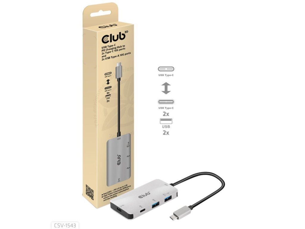 Club3D hub USB-C Gen2 PD na 2x USB-C 10G porty a 2x USB-A 10G porty