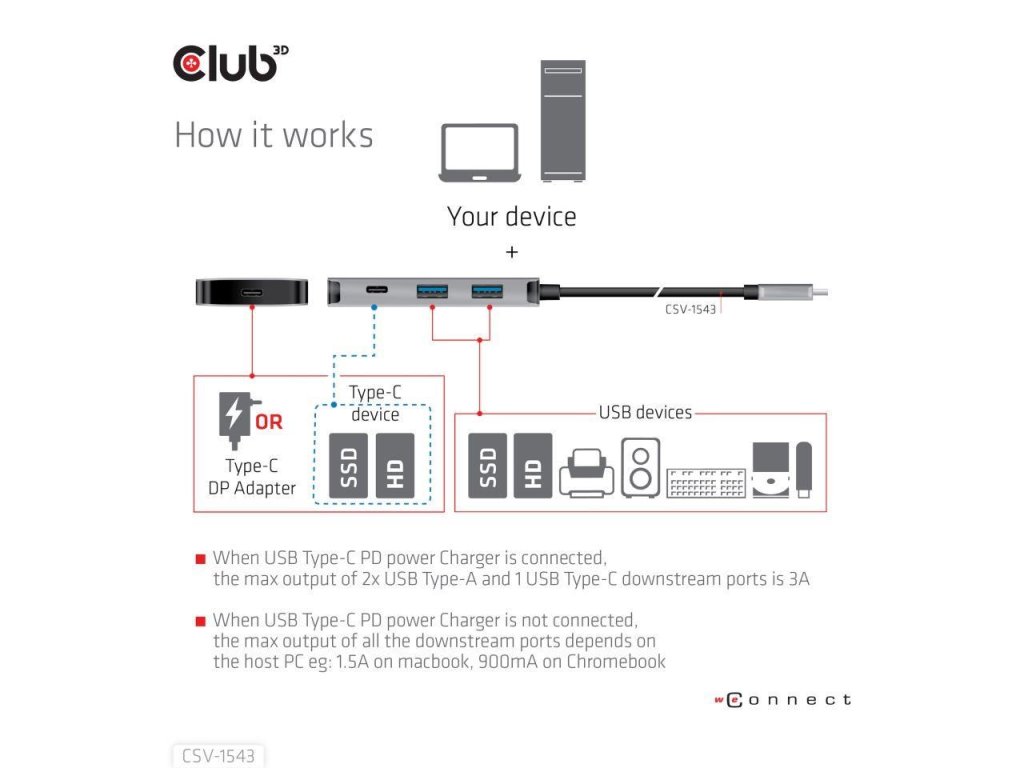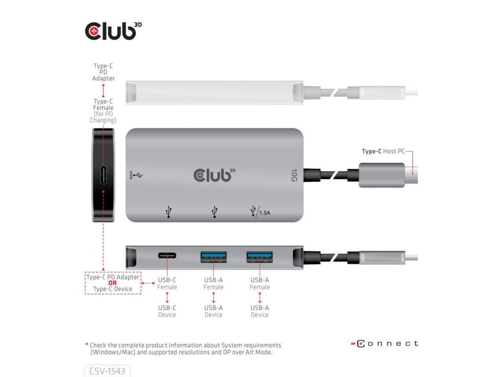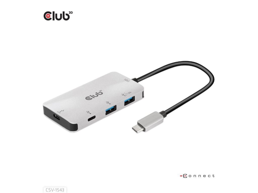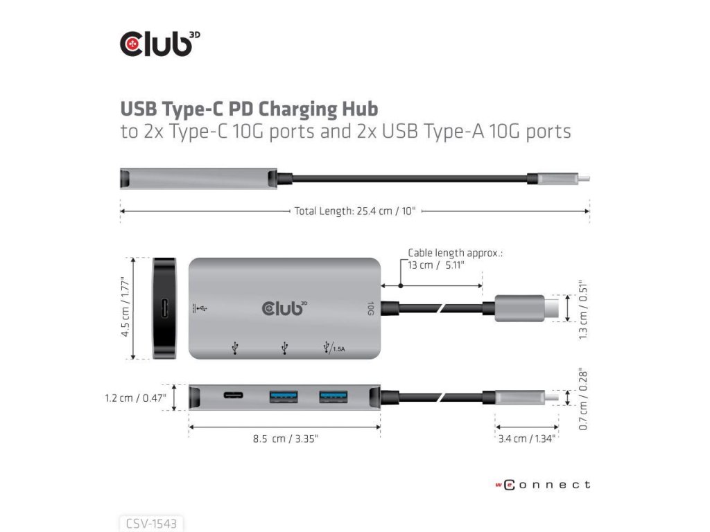 Club3D hub USB-C Gen2 PD na 2x USB-C 10G porty a 2x USB-A 10G porty