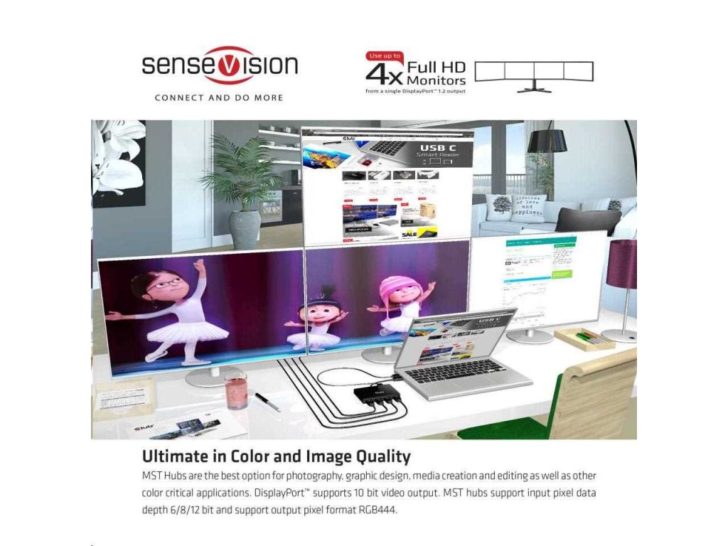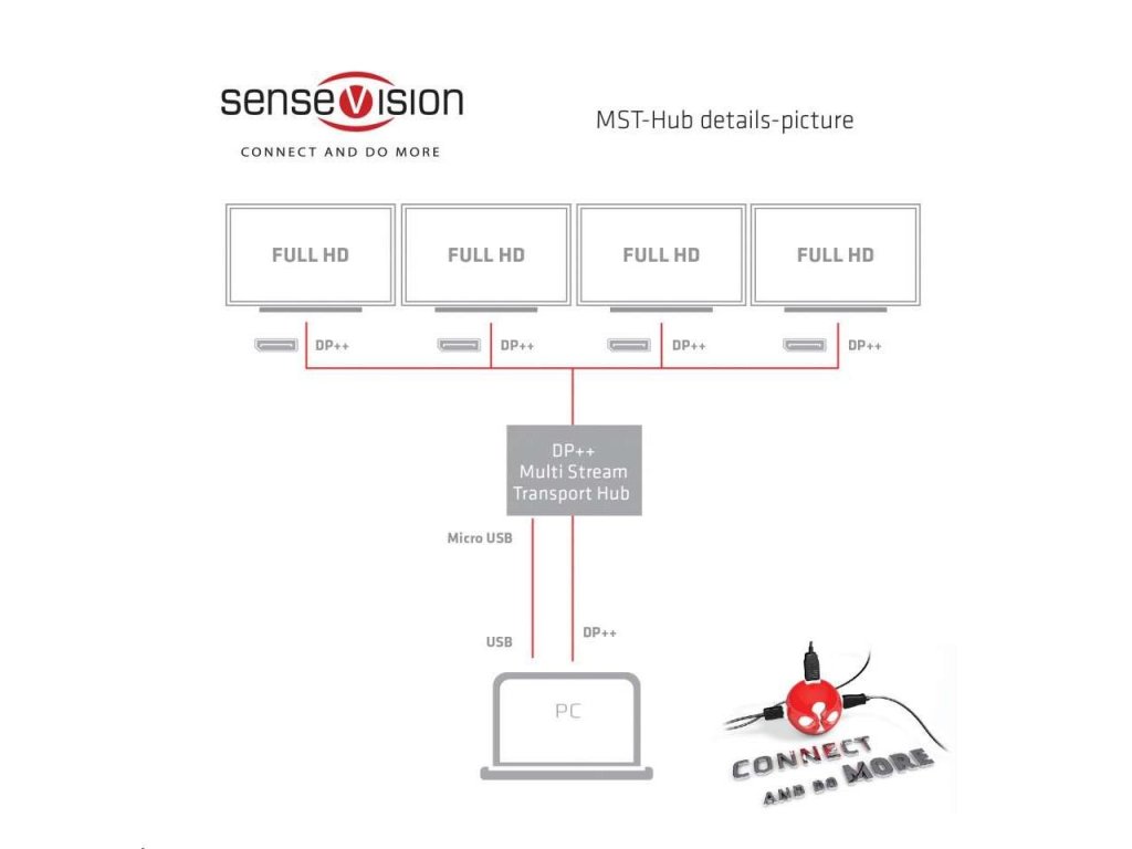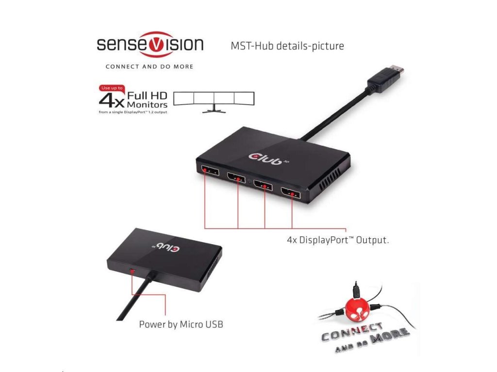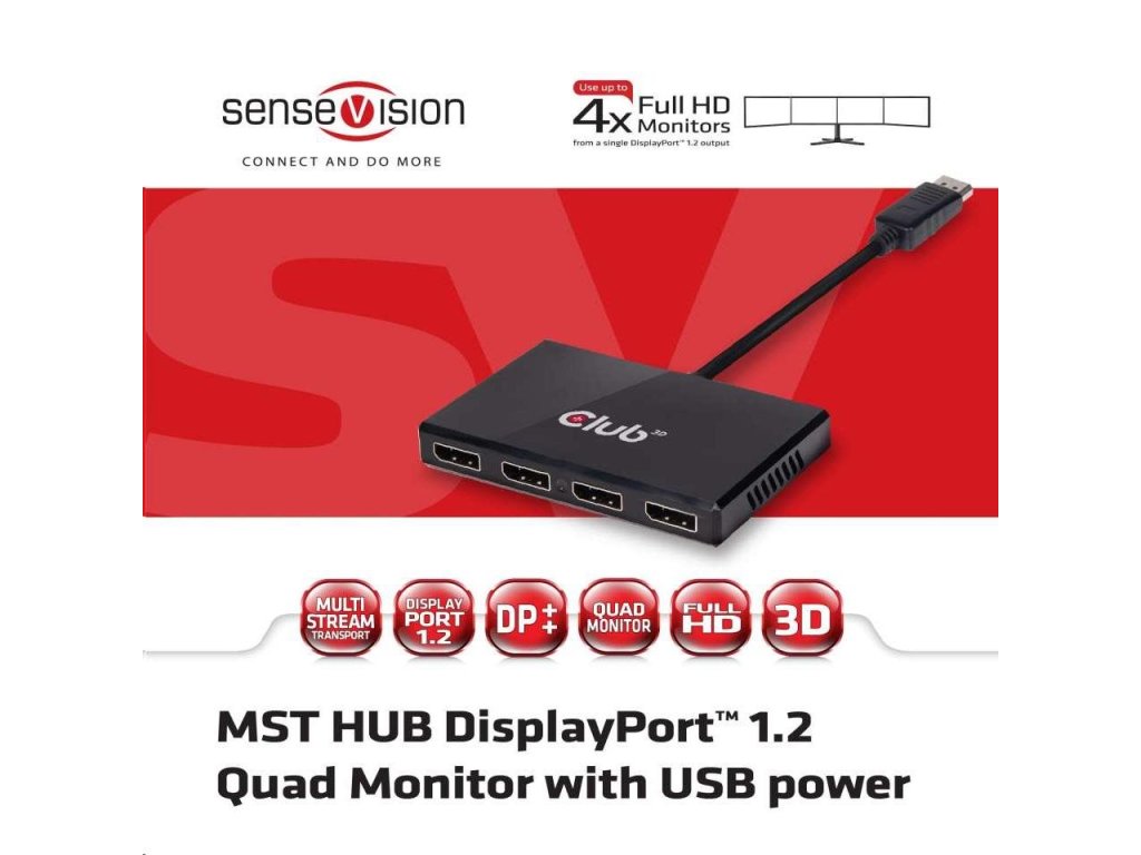 Club3D Video hub MST (Multi Stream Transport) DisplayPort na 4x DisplayPort, USB napájení