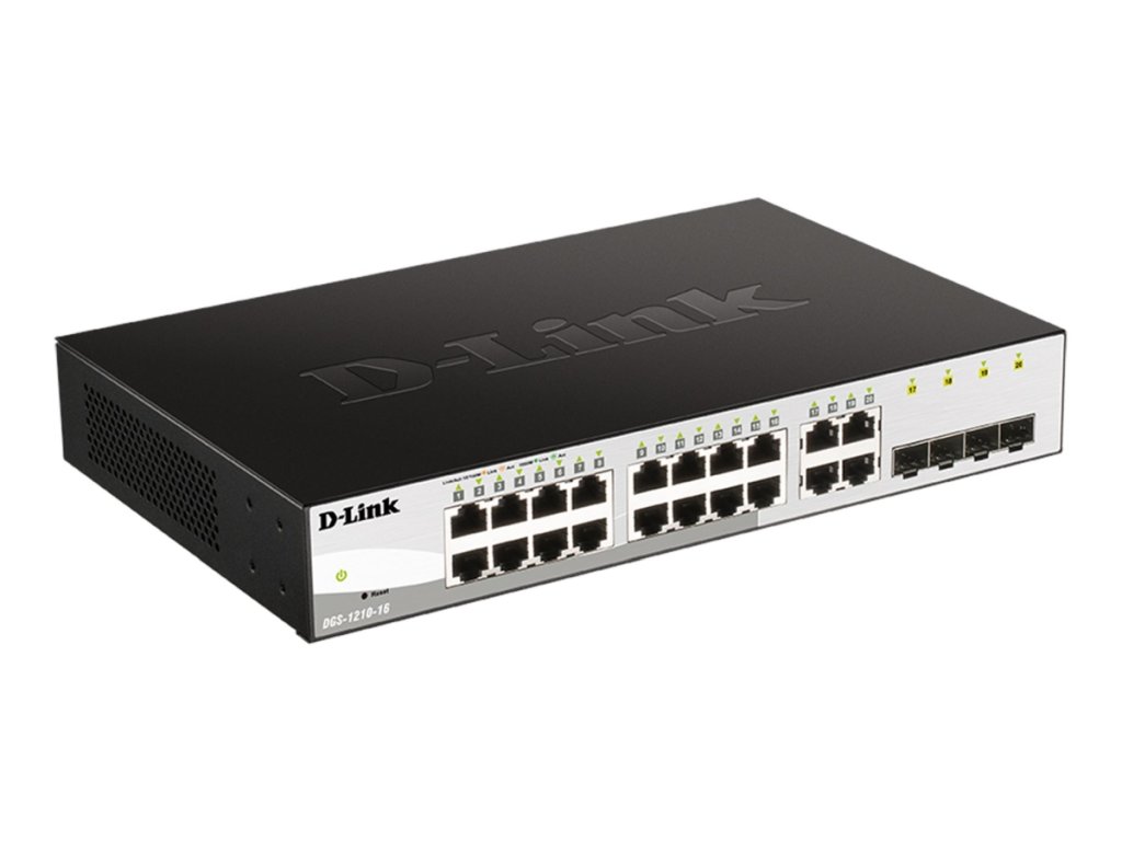 D-Link DGS-1210-16, 16-port 10/100/1000 Gigabit Smart Switch including 4 Combo 1000BaseT/SFP