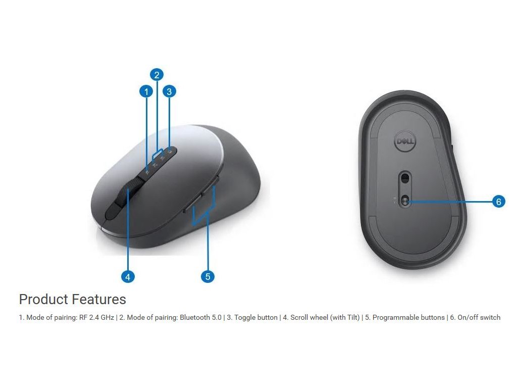 Dell MS5320W/Kancelářská/Optická/Pro praváky/1 600 DPI/Bezdrátová USB/Černá