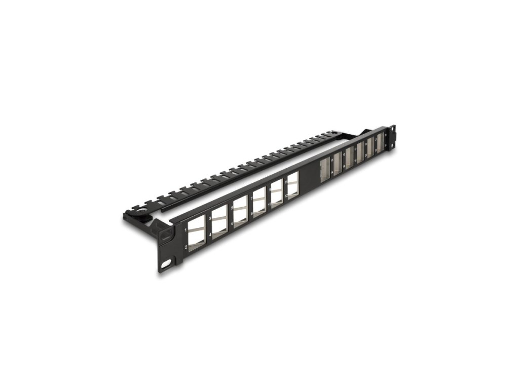 Delock Patch panel Keystone 19”, 24 portový, úhlový, s uvolňováním napětí, černý