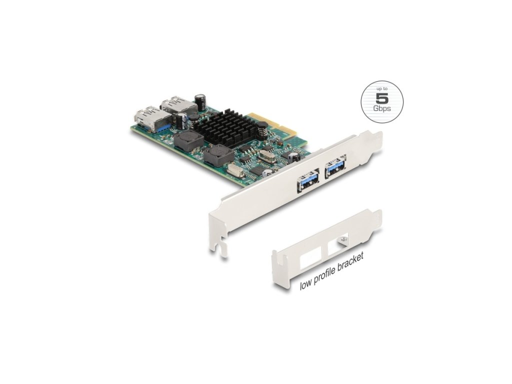 Delock PCI Express x4 karta na 2 x externí USB 5 Gbps Typ-A + 2 x interní USB 5 Gbps Typ-A, Duální - Low profile