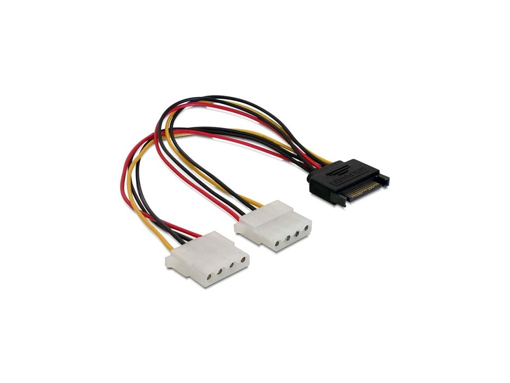Delock Power Adapter SATA 15-pin samec na 2x Molex 4-pin samice, 20cm
