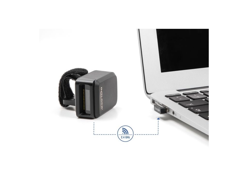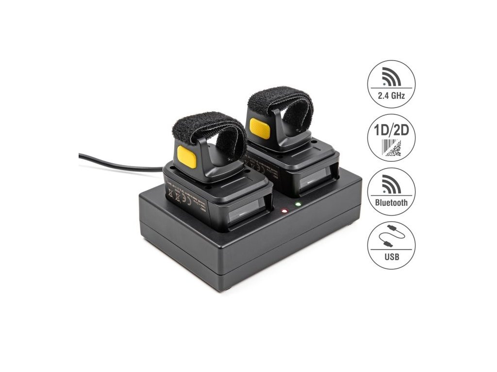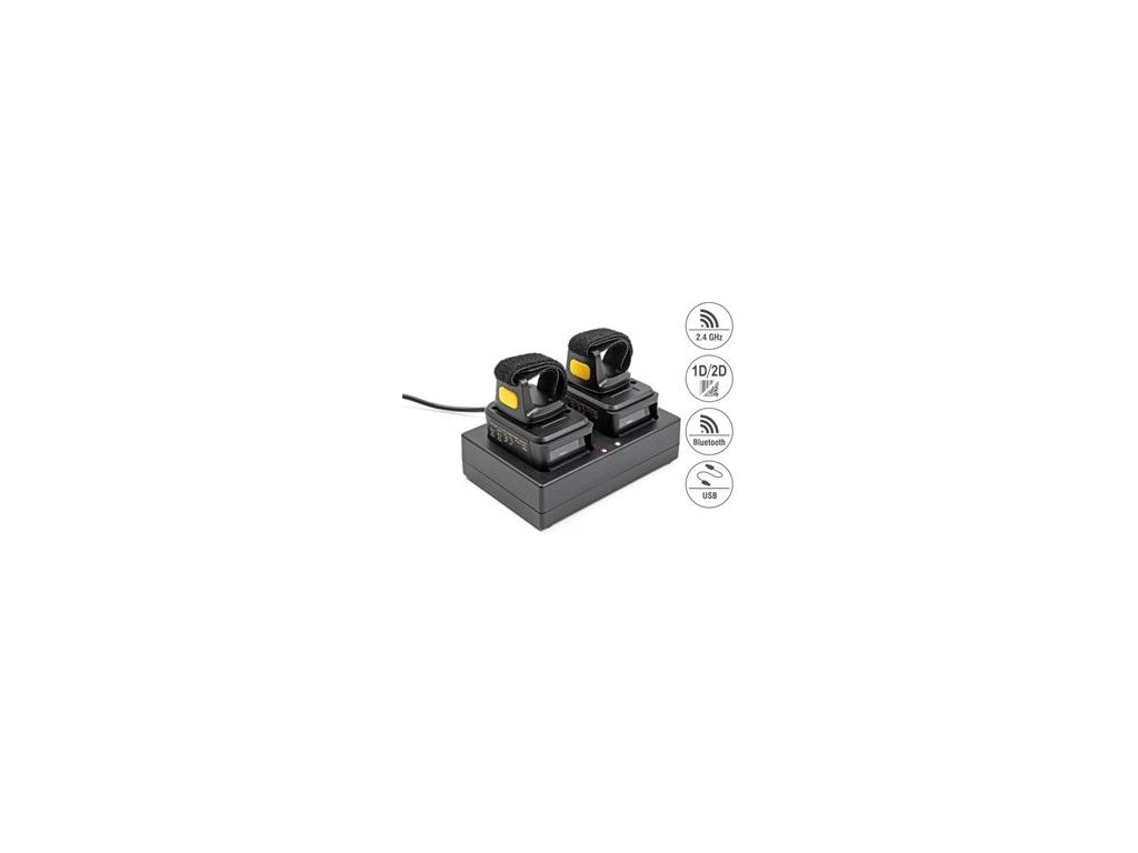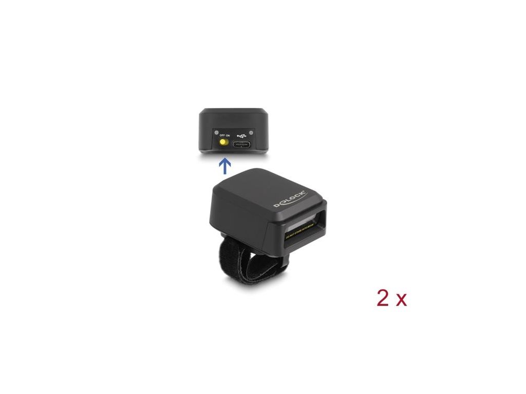 Delock Prstencová čtečka 1D a 2D čárových kódů s rozhraním 2,4 GHz nebo Bluetooth (2 ks) + nabíjecí stanice