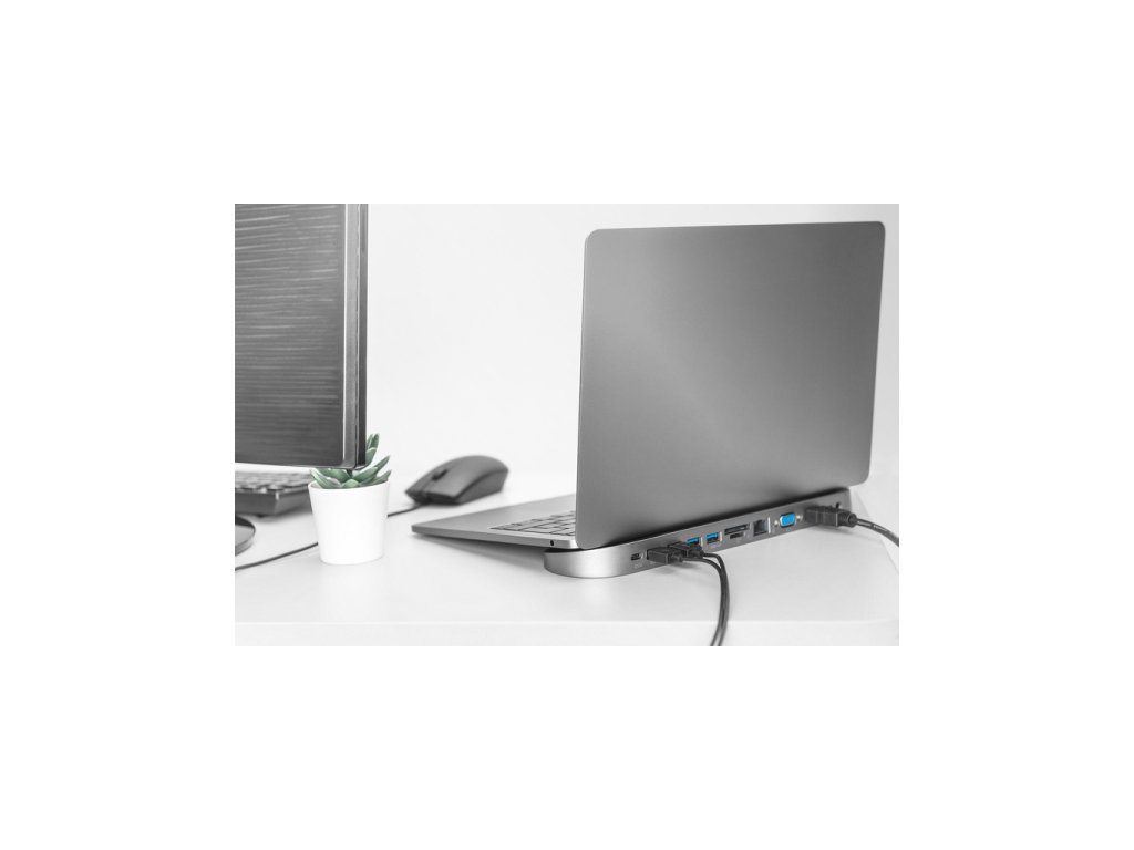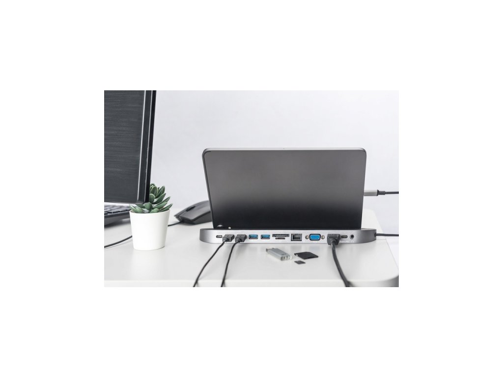 Digitus 12portová dokovací stanice USB-C, šedá, HDMI, VGA, 2x USB-C, 4x USB-A, RJ45, 1x 3,5 mm, SD / MicroSD
