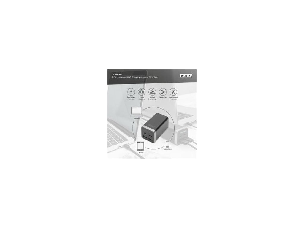 Digitus 4portový nabíjecí adaptér USB, 65W GaN 65W, 2x USB-C, 2x USB-A, PD3.0