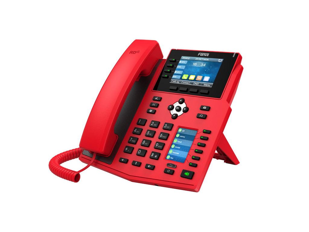 Fanvil X5U-R SIP červený tel., 3,5''bar.disp.+ 2,4'' disp., 16SIP, 4link.tl., 30DSS tl., BT, dual Gbit