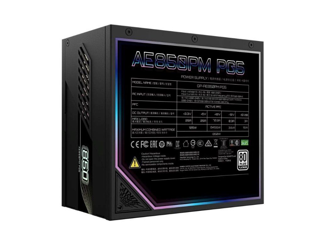 GIGABYTE zdroj AE850PM PG5, 850W, 80+ Platinum, 120mm fan, černá