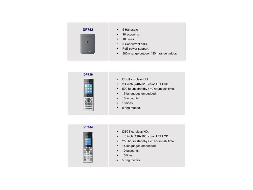 Grandstream DP730 IP tel., 2,4'' bar. displ., 2SIP úč., video, BT, Micro USB, HAC, Push-to-talk