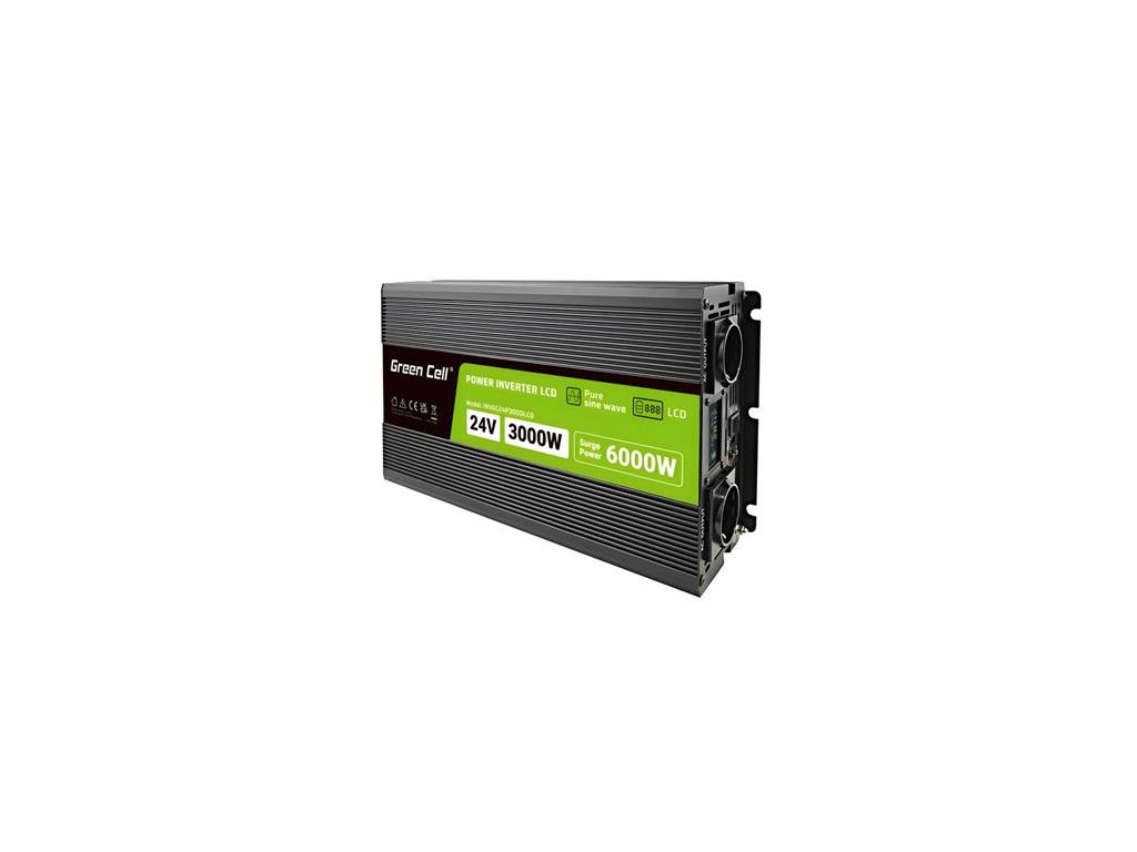 Green Cell PowerInverter LCD 24 V 3000W/60000W vehicle inverter with display - pure sine wave