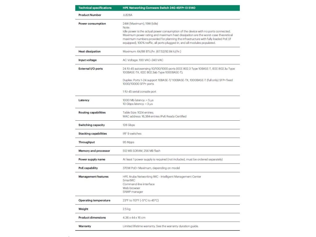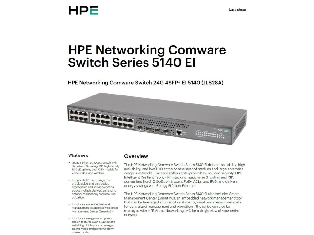 HPE Networking Comware 5140 24G 4SFP+ EI Switch JL828AR RENEW