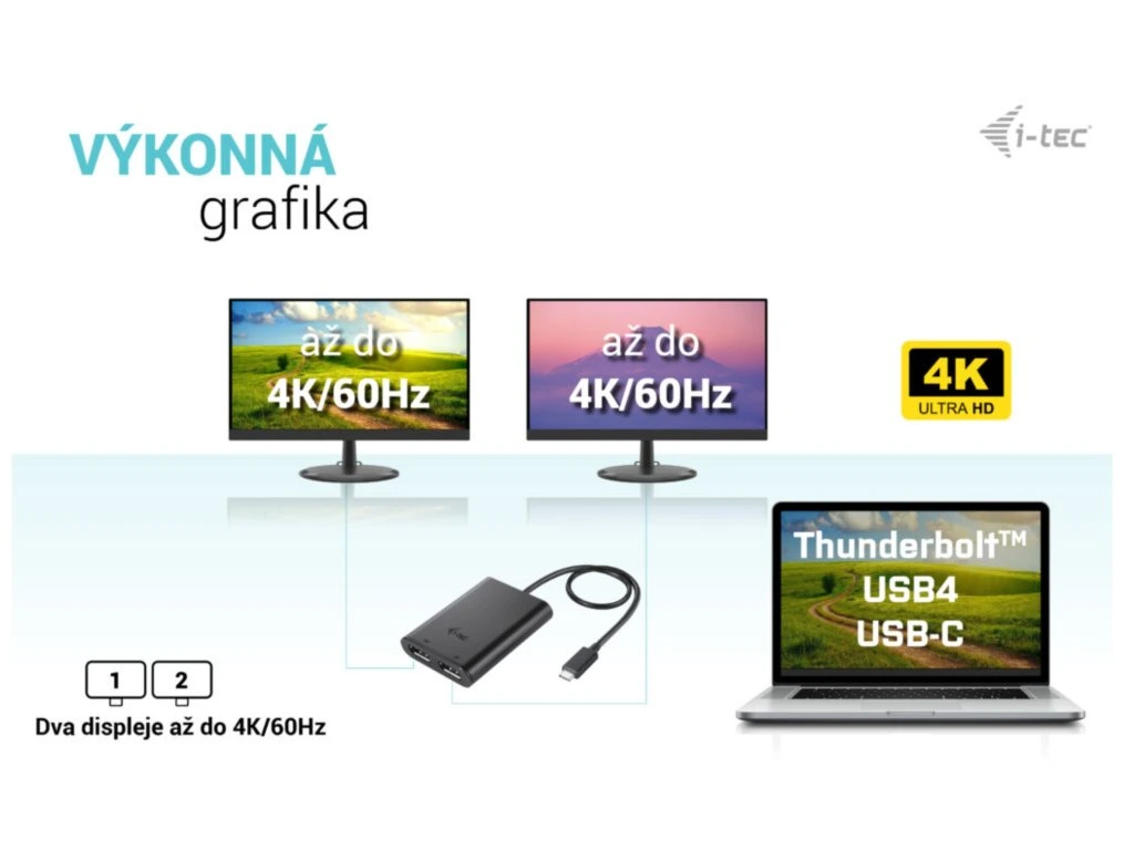 i-tec USB-C Dual 4K/60Hz (single 8K/30Hz) DP Video Adapter