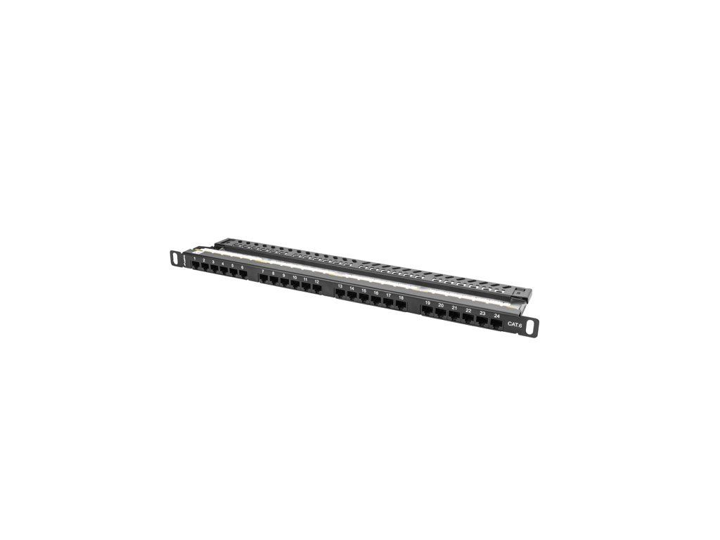 PATCH PANEL 24 PORTŮ 0,5U 19'' CAT.6 UTP ČERNÝ LAN
