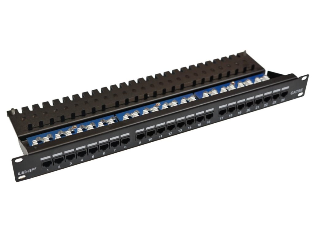 Patch panel LEXI-Net UTP cat.5e 24p. (horní zářez - "KRONE") - black