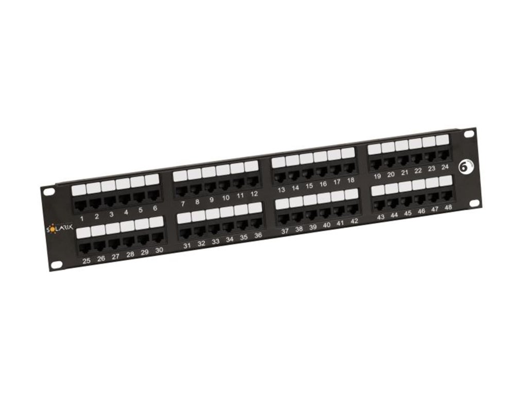 Patch panel Solarix SX48-6-UTP-BK UTP cat.6 48p., 2U, 350MHz