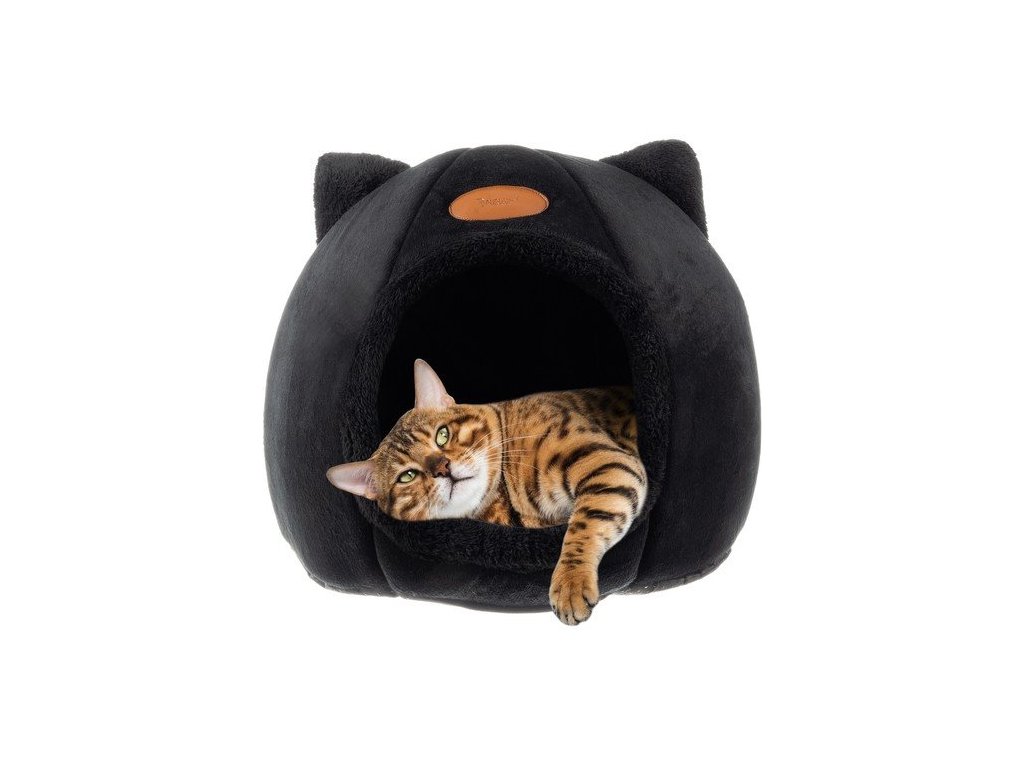 Pelíšek pro kočku 40 x 40 cm černá Purlov 21947 s ouškama