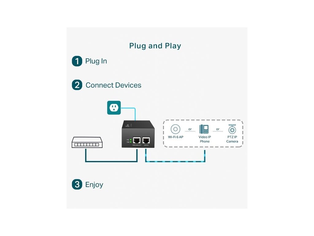 TP-Link TL-PoE150S PoE injector 48V (15,4W), IEEE802.3af